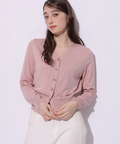 ハートボタンが愛らしいワンポイントになるニット。