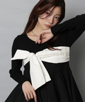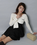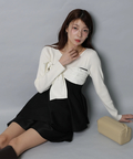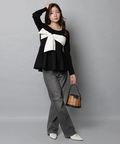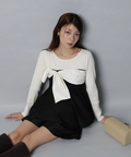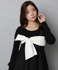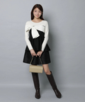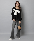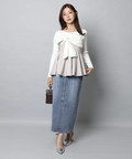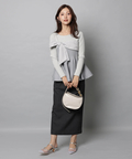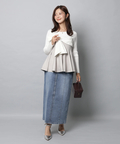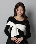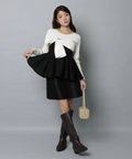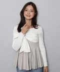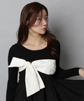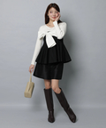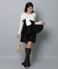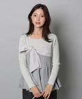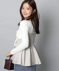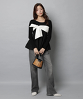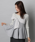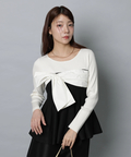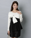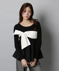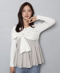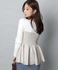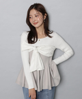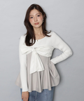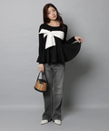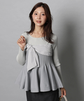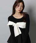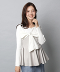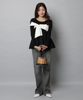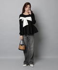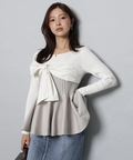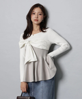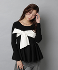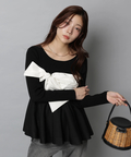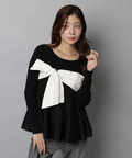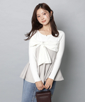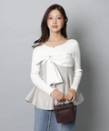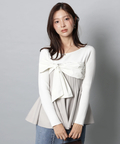 立体的なリボンデザインと、動きのあるペプラムシルエットが目を引くニットトップス。