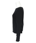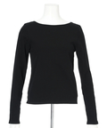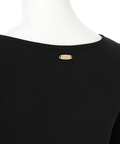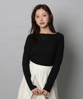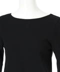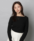 顔まわりをすっきり見せるボートネックが特徴のカットソー。