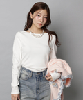 程よく身体に寄り添うシルエットで、インでもアウトでも使いやすい万能トップスです。