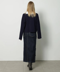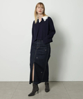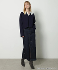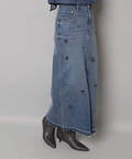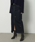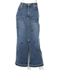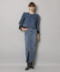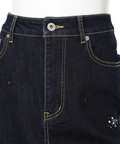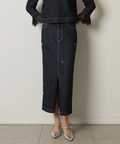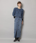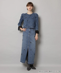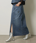 フロントに散らしたビジューが歩くたびに輝きを添えるタイトスカート。