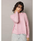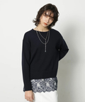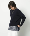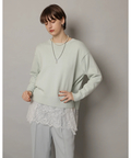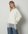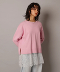 やわらかな春色ニットに、繊細なレースキャミを重ねたセットアイテム。