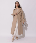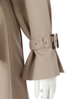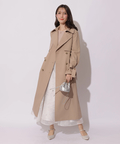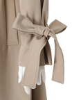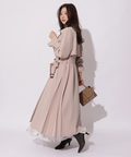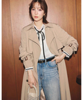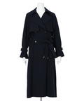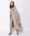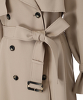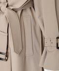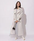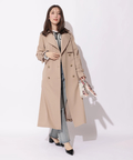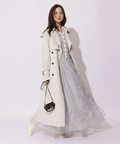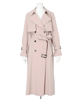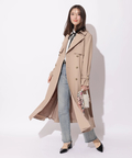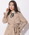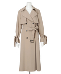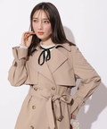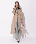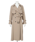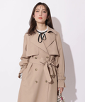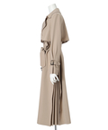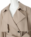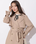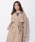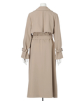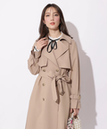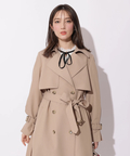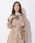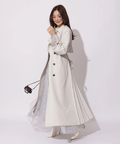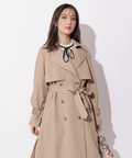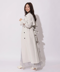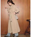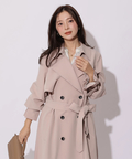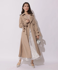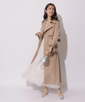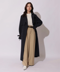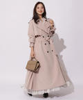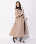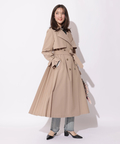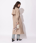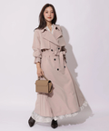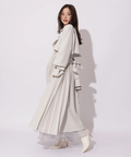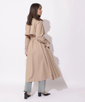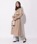 歩くたびに揺れるサイドプリーツが、軽やかな表情を添えるトレンチコート。