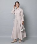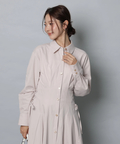 サイドのレースアップがさりげないアクセントになった、上品見えのシャツワンピース。