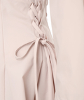 フロントはすっきり、バックはシャーリング切替で立体感を持たせ、後ろ姿まで美しく。
