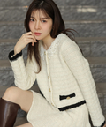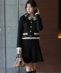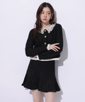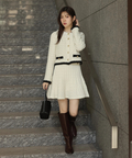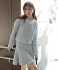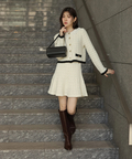 上品なツイード調ニットで仕立てたミニスカート。