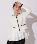 甘さのあるデザインも、ボトム次第で印象を調整しやすいのが魅力。