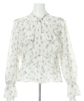 プリントフリルショートブラウス