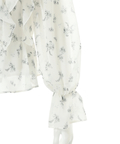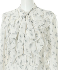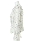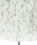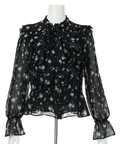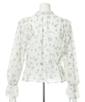 繊細な小花柄プリントに、立体感のあるフリルを重ねた華やかなショートブラウス。