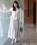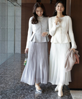すっきりとした上身頃と揺れ感のあるスカートが、自然な立体感を演出します。