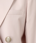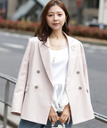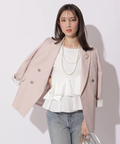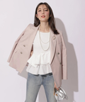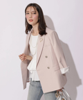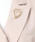テーラードの端正さに、ハートモチーフのブローチがさりげなく映えるジャケット。