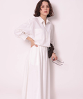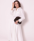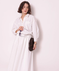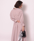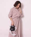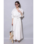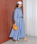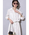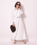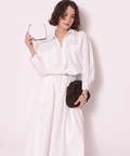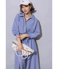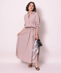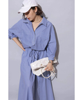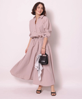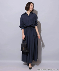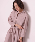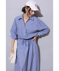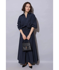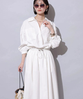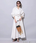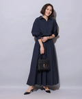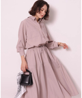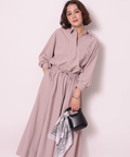 きちんと感のあるシャツデザインに、ウエストのドローストリングで程よい抜け感をプラスしたワンピース。