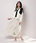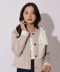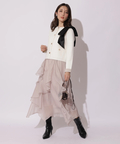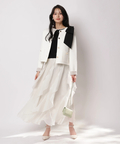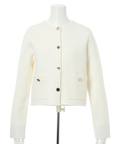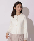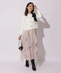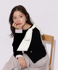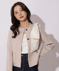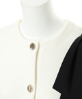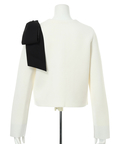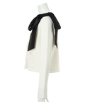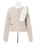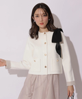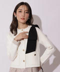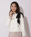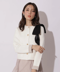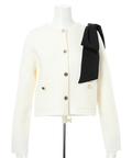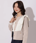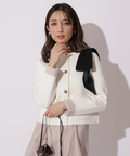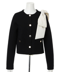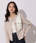 バイカラー配色に、ショルダーの結びディテールが映えるニットジャケット。