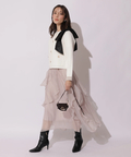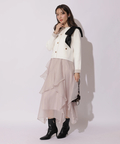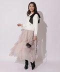 ワンピースに羽織って上品に、パンツを穿いて甘さを抑えた着こなしもおすすめ。