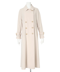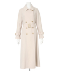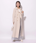 きれいめに着こなせるロング丈のデザインが魅力的なトレンチコート。