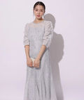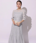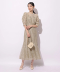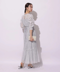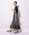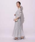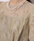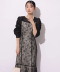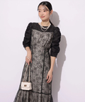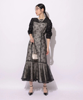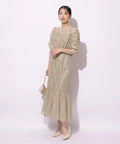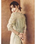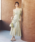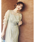 繊細なレース生地がエレガントで華やかなムードを放つドレス。
