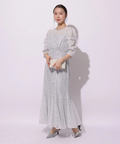 裾に向かってなだらかに広がるマーメイドシルエットで、上品な女性らしさを演出します。