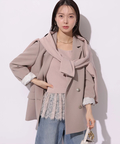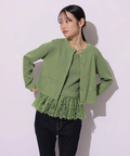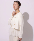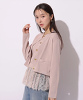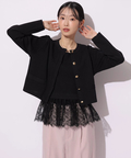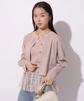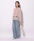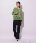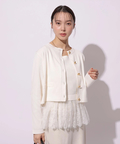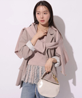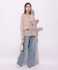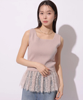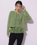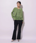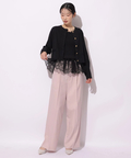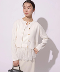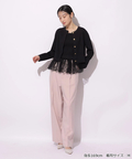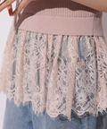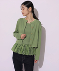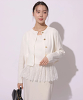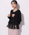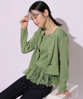 ふんわりと広がるペプラムレースがスタイリングのアクセントになるニットアンサンブル。