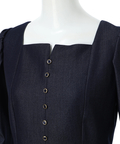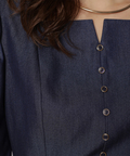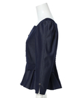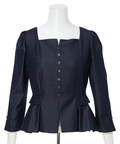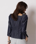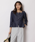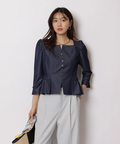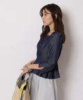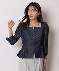 スクエアネックがデコルテを美しく見せる、上品なペプラムブラウス。