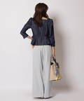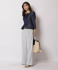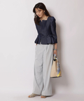 テーパードパンツで通勤に、スカート合わせで華やかなシーンにも活躍する一枚です。
