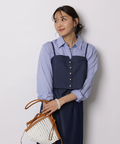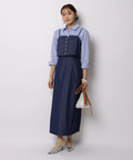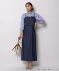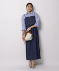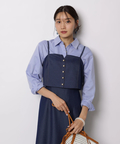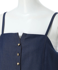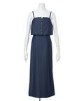 トップスとワンピースを重ねたようなデザインが特徴の、セットアップライクなキャミワンピース。