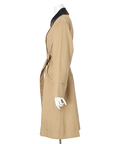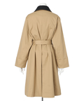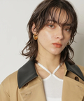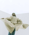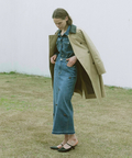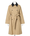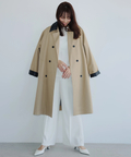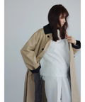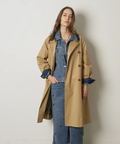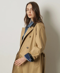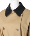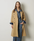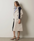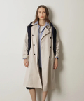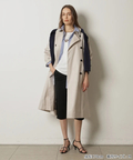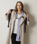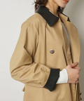 襟元に艶を抑えた異素材を組み合わせた、表情のあるトレンチコート。