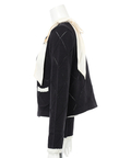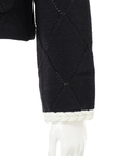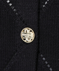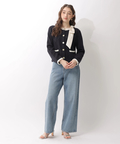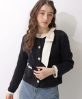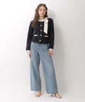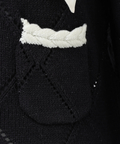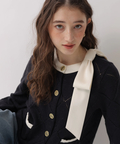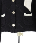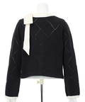 繊細な編み柄と、肩に添えたリボンディテールが印象的なニットジャケット。