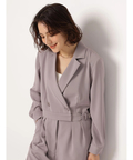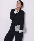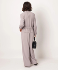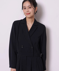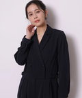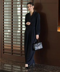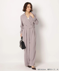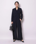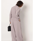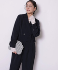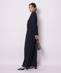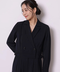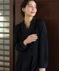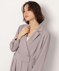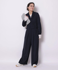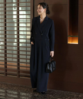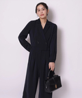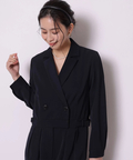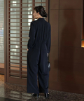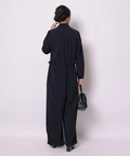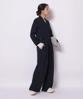 ジャケットライクな上身頃と、落ち感のあるパンツシルエットを組み合わせたジャンプスーツ。
