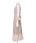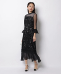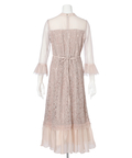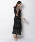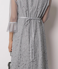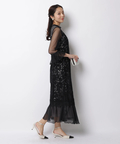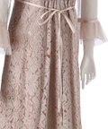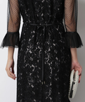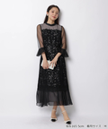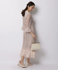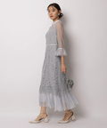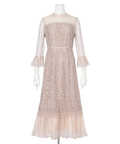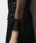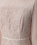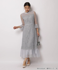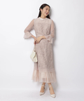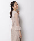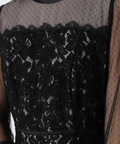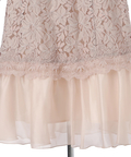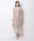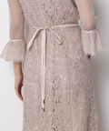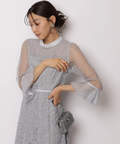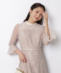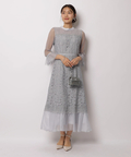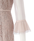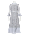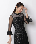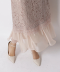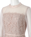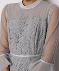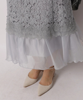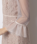 異なる表情のレース素材を組み合わせ、奥行きのある華やかさを演出したドレス。