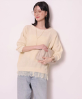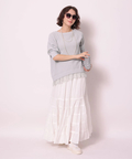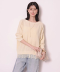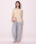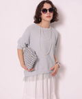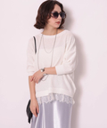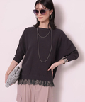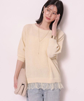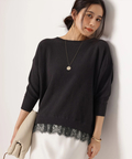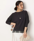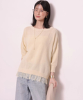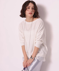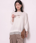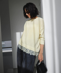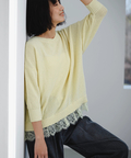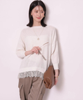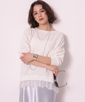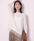 裾にあしらった繊細なレースが目を引くプルオーバー。