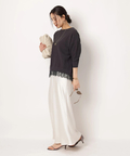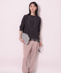 シンプルなニットデザインにレースディテールを組み合わせることで、程よくフェミニンな印象をプラスします。
