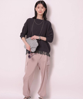 レースを活かしてシンプルなボトムと合わせると、バランスよくまとまります。