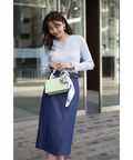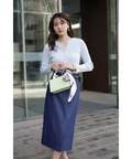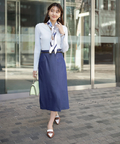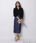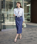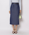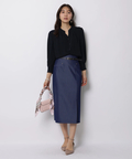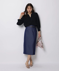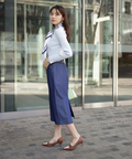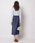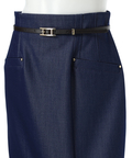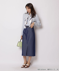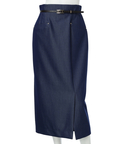 すっきりとしたタイトシルエットに、ベルトを添えた上品なスカート。