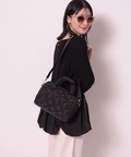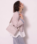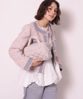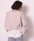 コンパクトなシルエットと、内側の配色がフェミニンなムードをプラスします。