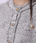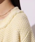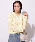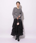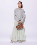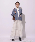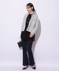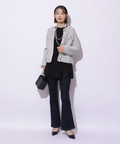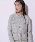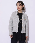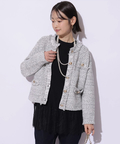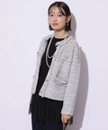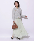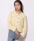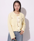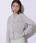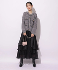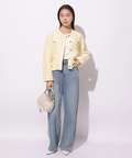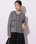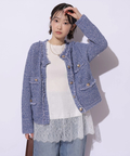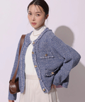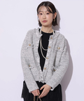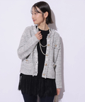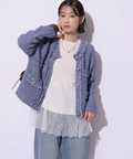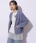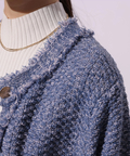 生地端のフリンジが華やかな印象を与えるニットジャケット。