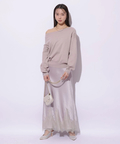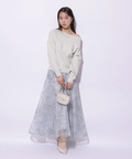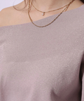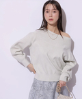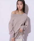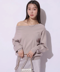 オフショルダーのデザインでさりげない肌見せを楽しむことができます。