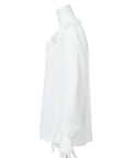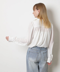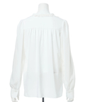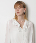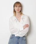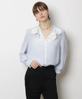すっきりとしたネックラインで甘さを程よく抑えた、大人の女性にぴったりのブラウス。