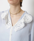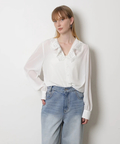 ワイドパンツやマニッシュなスラックスと合わせて甘さを程よく抑えたスタイリングや、ジャンパースカートやキャミワンピースのインナーとしてレース襟をポイントにしたレイヤードコーデもおすすめ。