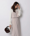 キャミトップスとワンピースを重ねたようなデザインが魅力の、セットアップライクキャミワンピース。