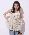 繊細なレースとフリルが目を惹く、華やかなフリルキャミ。