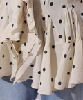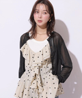 胸元のラッフルとウエストのレースアップデザインが女性らしいシルエットを演出し、存在感のある着こなしに仕上げます。