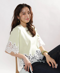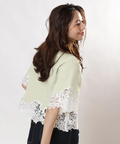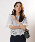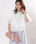 裾と袖口にあしらった繊細なレースが目を惹くTシャツニット。