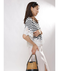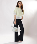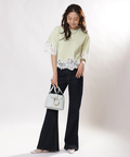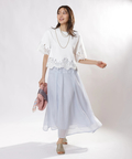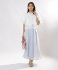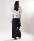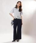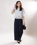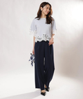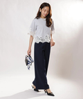 シンプルなクルーネックに華やかなディテールをプラスし、一枚で着映えを叶えます。