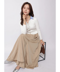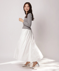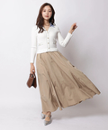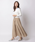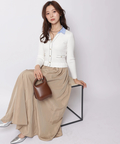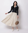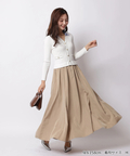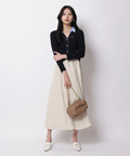 フィット感のあるトップと広がるスカートのコントラストで美しいバランスを演出し、ヒール合わせで通勤に、フラットシューズで休日にも映える一着です。