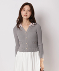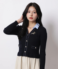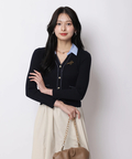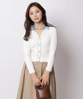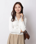 ゴールド調ボタンやポケット風ディテールがきちんと感を添え、上品な印象に導きます。