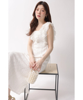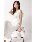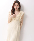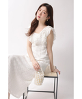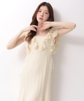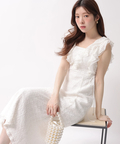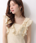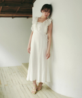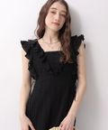 立体感のあるカットレースとフリルが華やぎを添えるワンピース。
