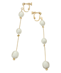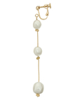 不揃いなフォルムが魅力のパール調モチーフを縦に連ねたイヤリング。