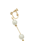 不揃いなフォルムが魅力のパール調モチーフを縦に連ねたイヤリング。繊細なチェーン使いが軽やかな印象を与え、動くたびにやわらかく揺れて視線を引きつけます。シンプルなトップスに合わせてアクセントにしたり、ドレススタイルに取り入れて華やぎを添えるのもおすすめ。耳元にニュアンスをプラスする、大人のためのデザインです。