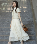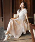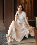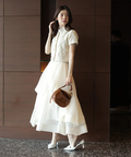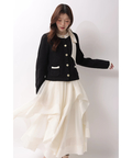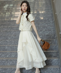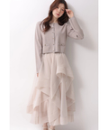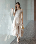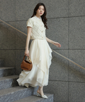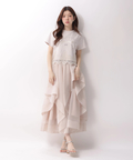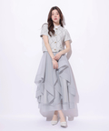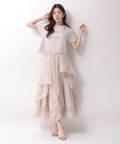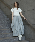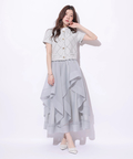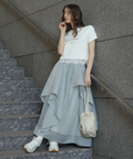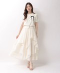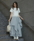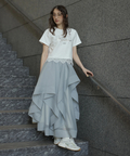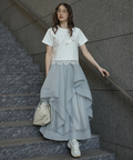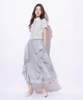 立体的に重なるランダムラッフルが視線を惹きつけるシアースカート。