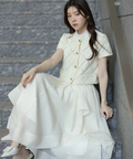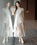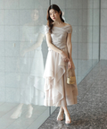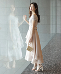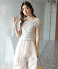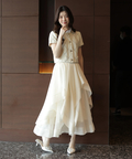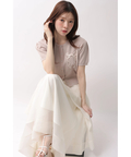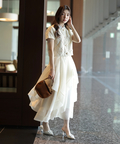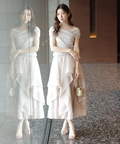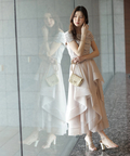 軽やかな透け感と表情豊かなフリルが、動くたびに華やかな揺れを生み出します。